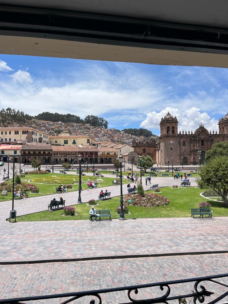 Wow. So far I have been absolutely blown away by Cusco’s beauty, the kindness of its people, and the simplicity of the lifestyle. Cusco is filled with Incan architecture, art, and history. Everywhere you turn there is a museum, cathedral, local artist, or street art. When you drive just minutes outside the city, you encounter ancient Incan ruins, colorful tropical plants, and mountains as far as the eye can see. Next, the people! Everyone (volunteer coordinators, other tourists, locals) has been incredibly kind and welcoming. Walking around town feels safe, and when it doesn’t or if it gets dark, there are taxis on every block. Not to mention that people are so happy – literally singing and dancing in the streets. Finally, I want to comment on the lifestyle here. “Simple” may not be the correct word, but I am trying to say that the emphasis here is not on luxury. People generally do not use air conditioning or heating, water is only made warm by using low pressure, and people typically do not use toilet paper; if you do, you have to throw it in the trash can. This may sound like a primitive way of living, but it clearly allows people to place emphasis on other things in life – engaging with one another, dancing in the street, hiking a mountain, knitting a scarf, or cooking a meal as a family. Cusco seems to understand something about how to live that other people in the world don’t get. It’s undeniably special, and I feel very grateful to be here.