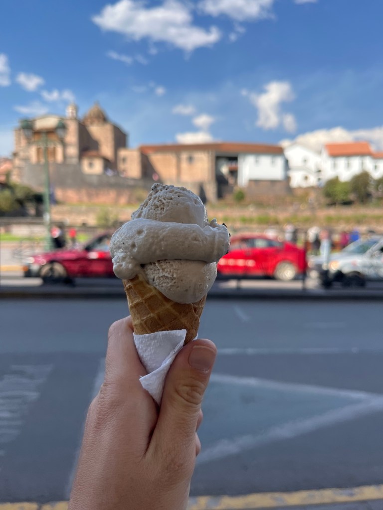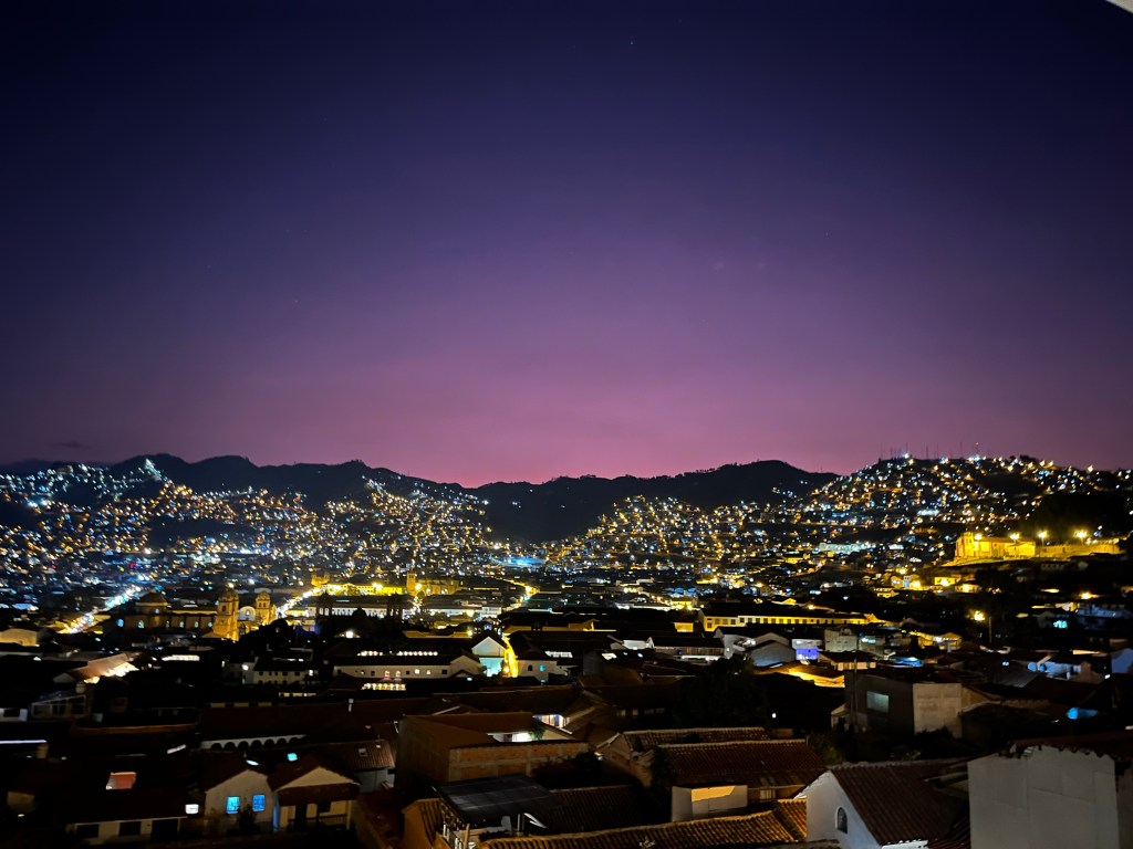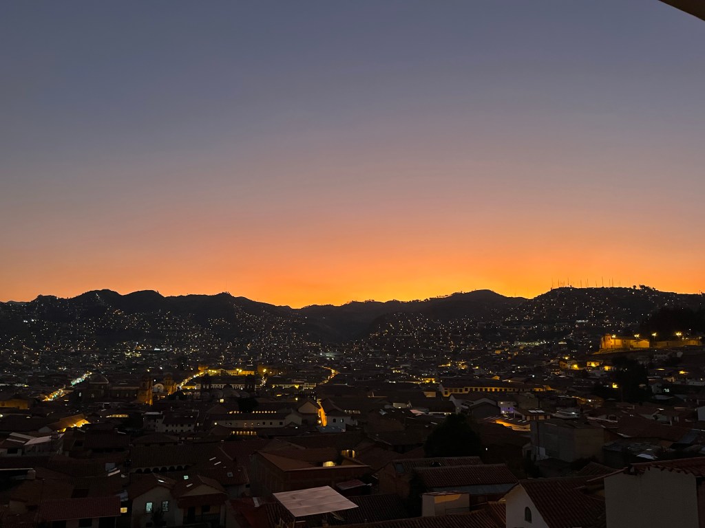 Otherwise, life in Cusco is good. The sunsets take your breath away each day, especially against the hillside of city lights. They have strangely good ice cream and chocolate here too! And don’t even get me started on all the shopping we’ve been doing at the street markets… I also joined a yoga studio in my favorite neighborhood – San Blas. Finally, last night, my roommate and I went to a salsa class – boy was that fun. Two hours of shimmying, stepping, looking like fools and laughing hysterically. It was a blast. I am finally making friends too, so that’s cool 🙂